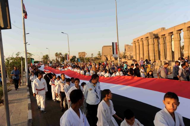 وكانت الاحتفالات قد بدأت فى تمام الساعة الخامسة ظهر الخميس ، حيث انطلق طابور لحملة علم مصر بطول 500 متراً بداية من الممشى السياحى مروراً بكورنيش النيل وينتهى بساحة معبد الأقصر ، ويشارك فيه 1500 شاباً من المحافظة.